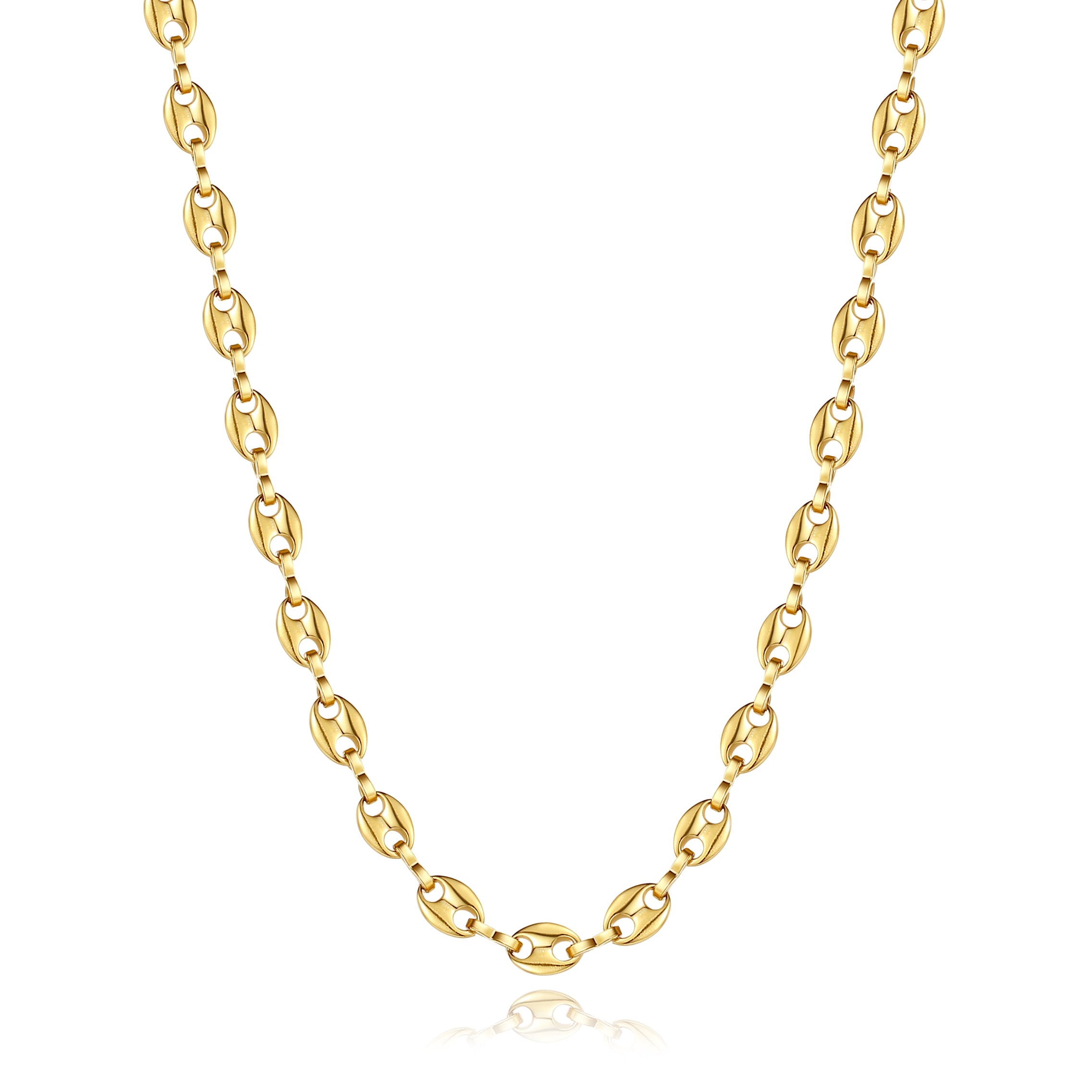 This Coffee Bean Chain piece is a stunning, minimalistic, and sophisticated necklace. It works perfectly as a casual day-to-day item or for adding a unique charm to a special occasion outfit.